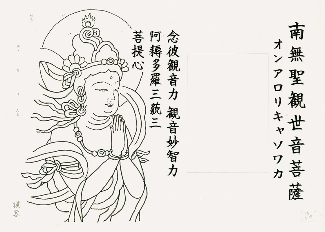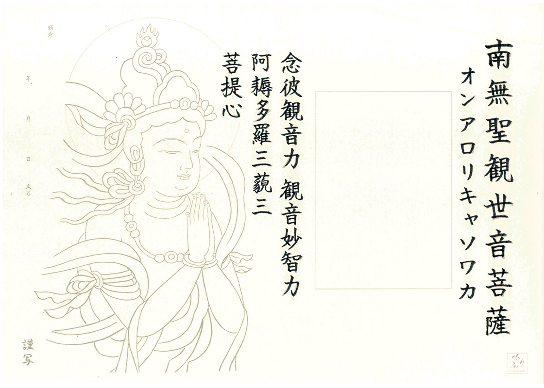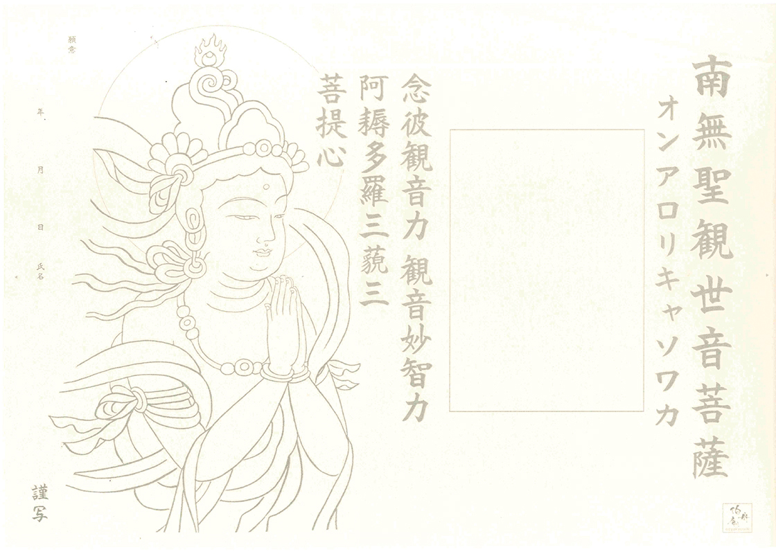 願いを込めて、写経、写仏、塗り絵を行い「絵写経」を完成させてください。