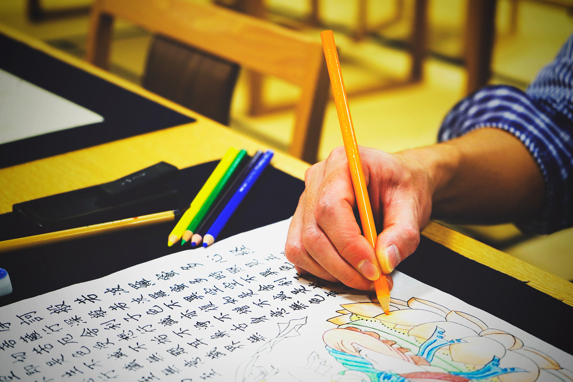 例えば、写経・写仏をしたあとの色塗りはお子様にしてもらい、共同作品として楽しむこともできます。